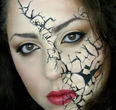 I created a face chart in order to portray my cracked face Idea. Firstly using my glamour glow pallet I highlight the convex areas of the face. I then applied a pink to highlight the cheeks and a natural colour from my glamour glow pallet to also highlight the eyes. I then used broken eggshell which I added to the top left hand side of the face chart which I then covered using a skin base foundation . using a fine makeup brush and a black from my supracolour pallet I went round the eggshells in order to make the face appear more cracked.